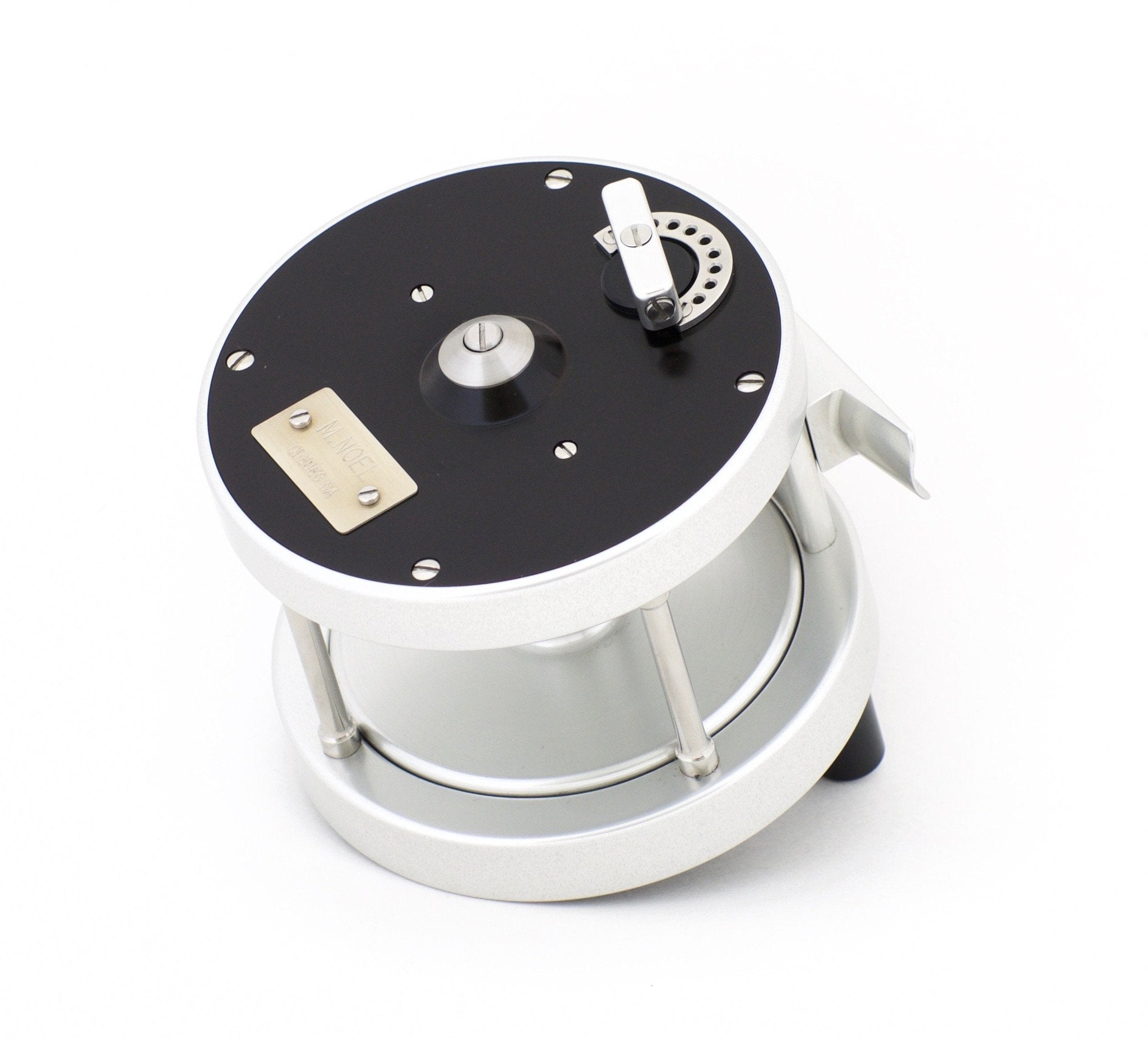 For sale here is a Maurice Noel salmon/steelhead reel - Model M300A. Anodized aluminum rims and sideplates. Multiplier gear. Adjustable drag knob on the back plate works perfectly throughout its range. The reel is left hand retrieve and is in mint condition. Diameter: 3 1/2" / Spool width: 1 1/2" / Weight: 14 1/4 oz. Capacity WF9F + 200yds 20lb backing. Comes with an aftermarket leather reel case and the original reel pouch. Another very fine and smoothly operating reel from one of the finest bench-made reel makers today. Skip the long wait for a new reel and grab this one before someone else does!