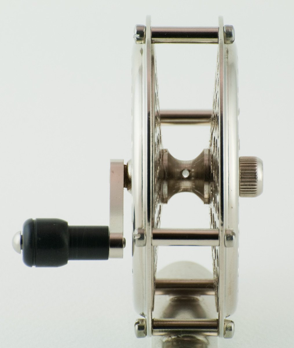 For sale here is a 1990's reproduction of the rare C. F. Orvis 1874 Trout Reel. The reel is marked C. F. Orvis Maker, Patented Manchester, VT. Ventilated narrow spool. The diameter is 2 7/8". Mint unfished.