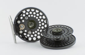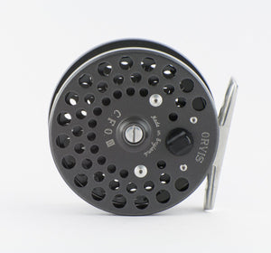 For sale here is an Orvis CFO III fly reel in excellent++ condition. Early screwback model. Comes with original zippered suede case. Right or left hand retrieve. Capacity up to a WF6 line + 50 yards of 20# backing.