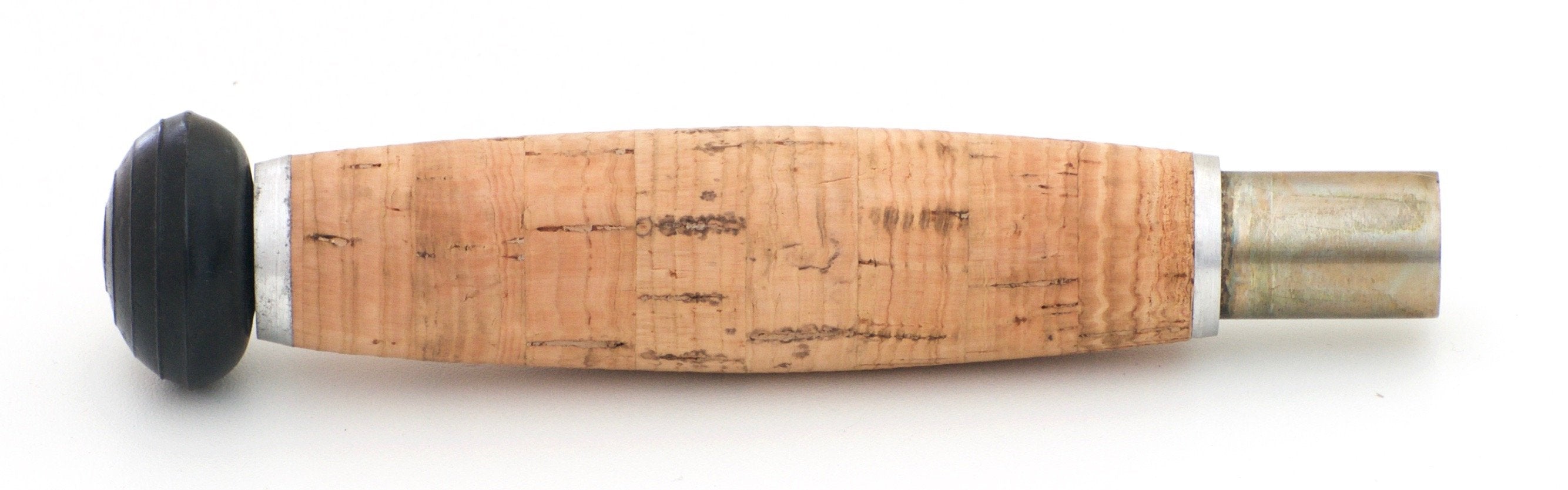 The rod features moderately tempered cane with caramel colored guides. The script remains clean and bold. The cigar-style grip is 7" in length with moderate soiling and light ridging. Down-locking nickel silver reel seat with a removable fighting butt. The fighting butt is 5" in length and remains in excellent condition. The ferrules are size 19/64 and 13/64 with an excellent fit. The rod weighs 8.20 oz. without the fighting butt, and 9.55 oz. with. The action is medium-fast. Includes original bag with a separate sleeve for the fighting butt and tube with the label 90% remaining.