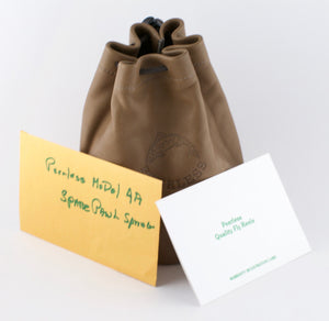For sale here is a Peerless 4A salmon / spey fly reel in unused condition. Left hand retrieve. Comes with original drawstring bag, box, warranty card, and spare spring. The reel has an adjustable drag setting. Classic click/pawl operation. 4 1/2" diameter. The line capacity is a DT11F & 150 yds of 20#. The reel weighs 8.8 oz.