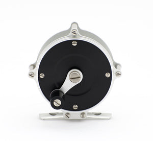 For sale here is a Peerless 77 raised pillar fly reel in unused condition. Left hand retrieve. Comes with original Peerless zippered pouch. The reel is 2 1/2" diameter without the pillars and 3" pillar to pillar. Weight 4.2 oz.
