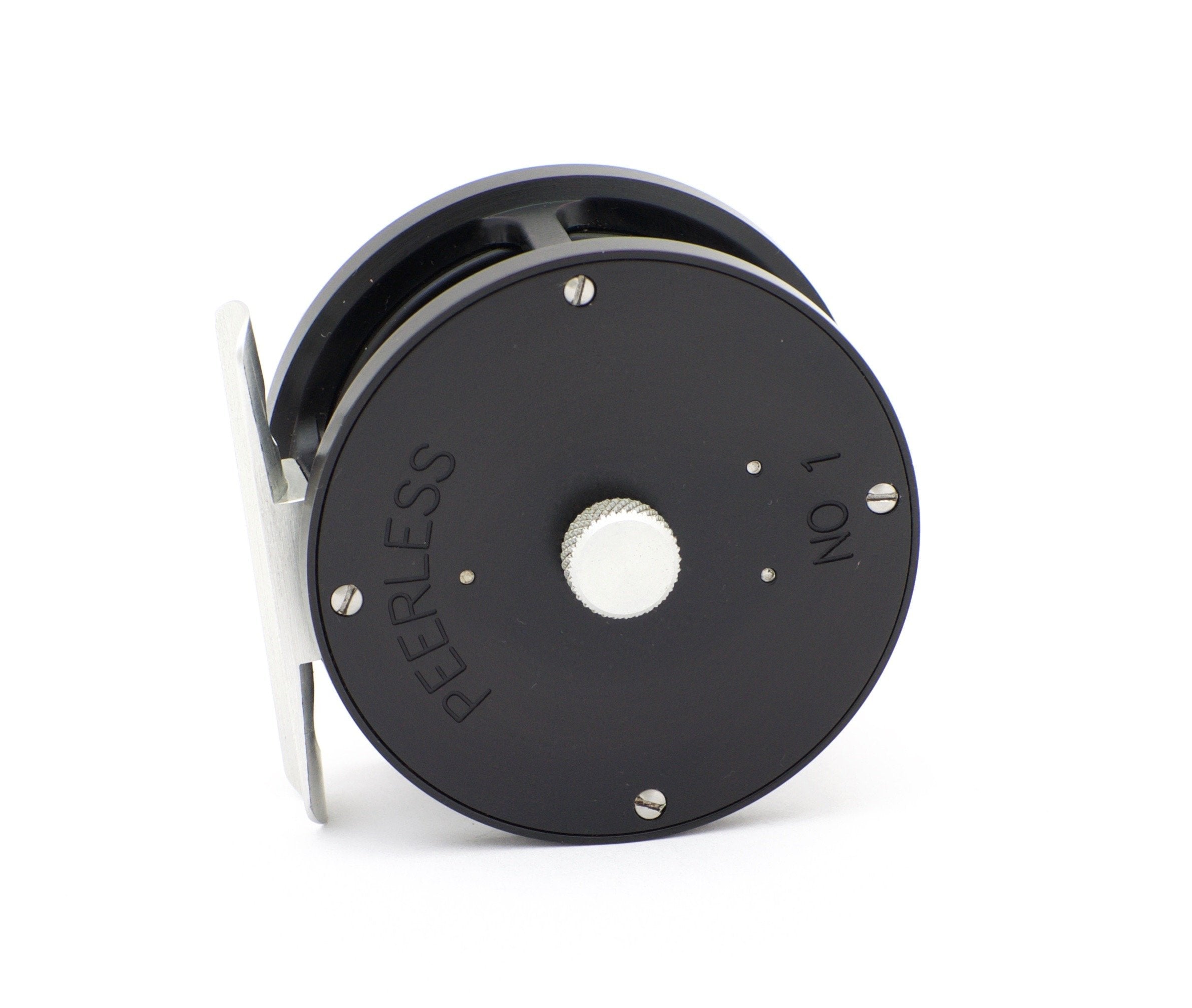 For sale here is a Peerless Model 1 fly reel in mint condition. The reel is set up for left hand retrieve but can be switched to right by the buyer. Designed for a 1 to 4 weight line. 2 3/4" diameter. The reel weighs 4.6 oz. The reel's line capacity is a DT4 plus 30 yards of backing. Fixed click/pawl operation. Includes the original Peerless reel case.
