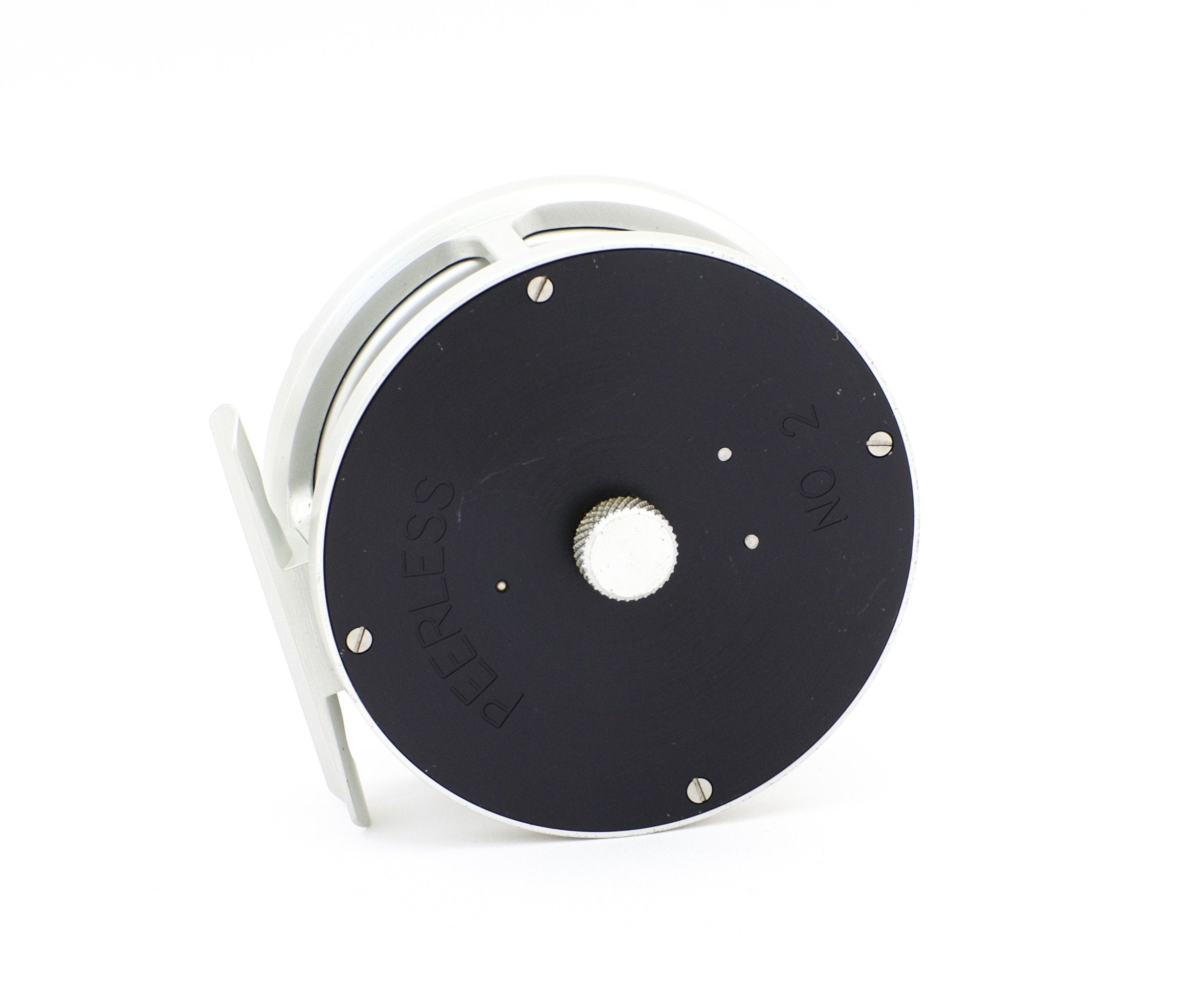 For sale here is a Peerless 2 fly reel in excellent used condition. Designed for a 5 or 6 weight line. 3 1/4" diameter. Fixed proprietary click check drag with just the right amount of spring tension. The reel weighs 5.4 oz. Line capacity is a DT5 plus 60 yards of backing. Original reel pouch included.
