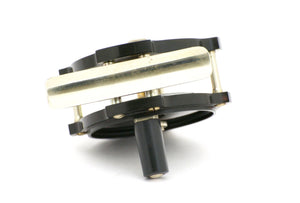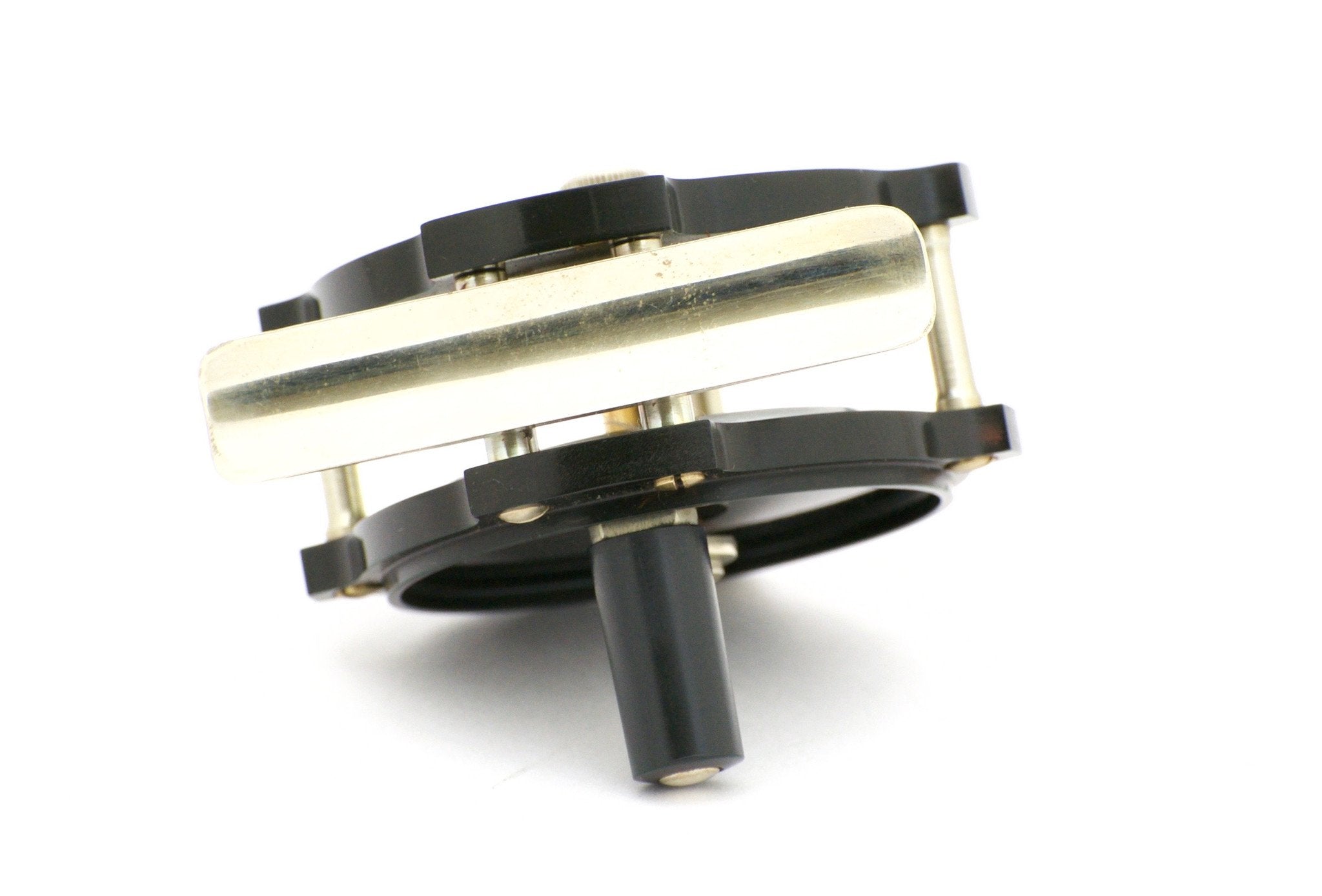 Apart from having closer tolerances, the new handmade Fairy reel is identical to the historic model sold by William Mills and Co. Side plates are carved from custom made laboratory grade hard rubber (ebonite); bolstered pillars, crank arm, footplate and screws are nickel silver; spool shaft and bushing are naval bronze, and the pawl is upgraded to stainless steel.