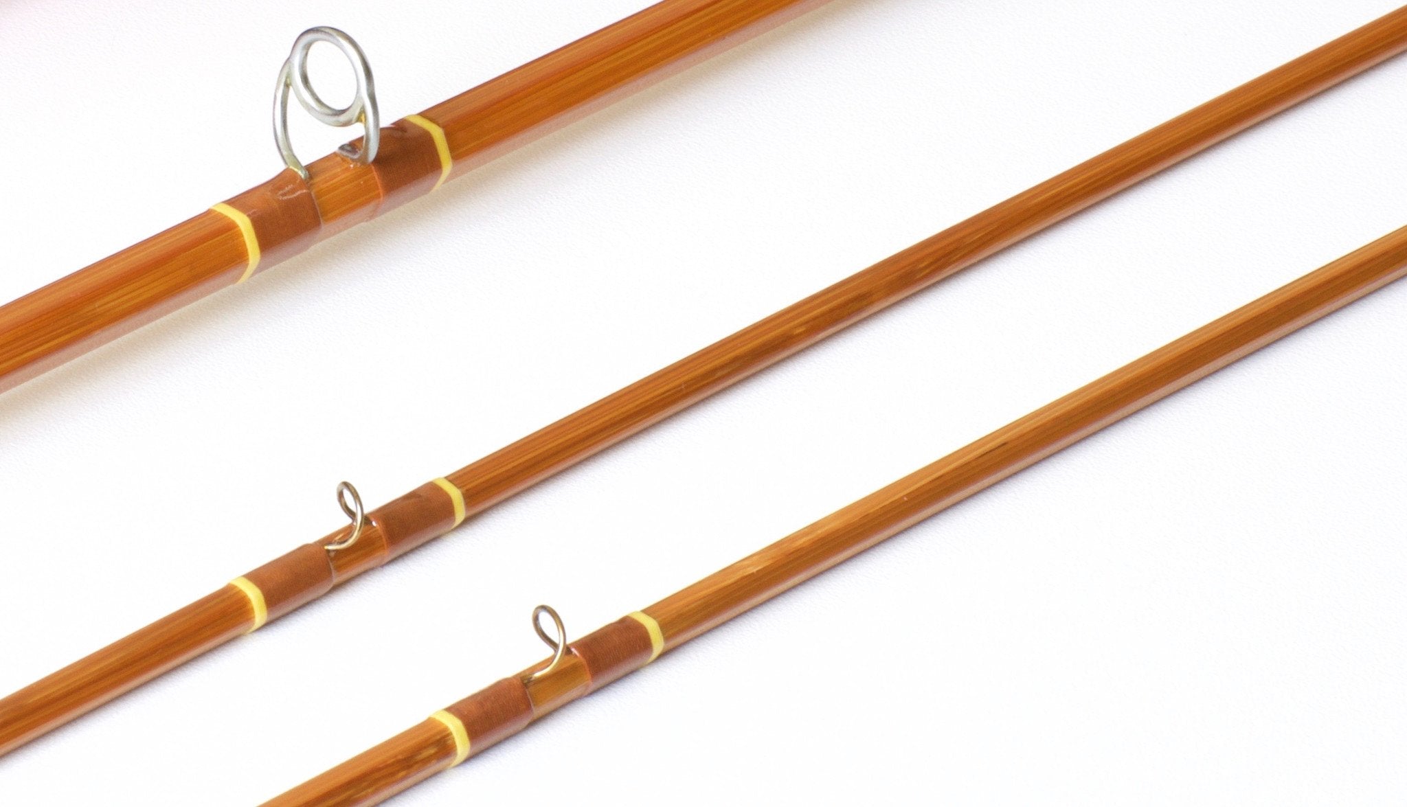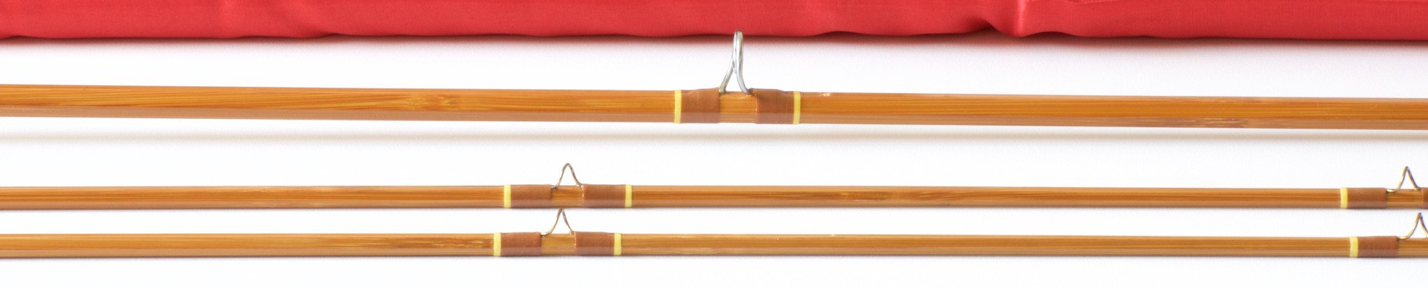 For sale here is a Pezon et Michel Parabolic Royale bamboo rod. 7'9 2/2 for a 5 weight line. Made in France. Staggered ferrule set up with original plug. Comes with original P&M rod bag and black tube, also presumably original but I cannot be certain of this. The rod is in mint condition with the original plastic still on the grip. This rod is a parabolic medium fast action rod. Excellent all around fly rod. Note, this is a French made P&M, not a Sharpe's or Farlow's rod built on a P&M blank. The rod weighs 3 3/4 oz.