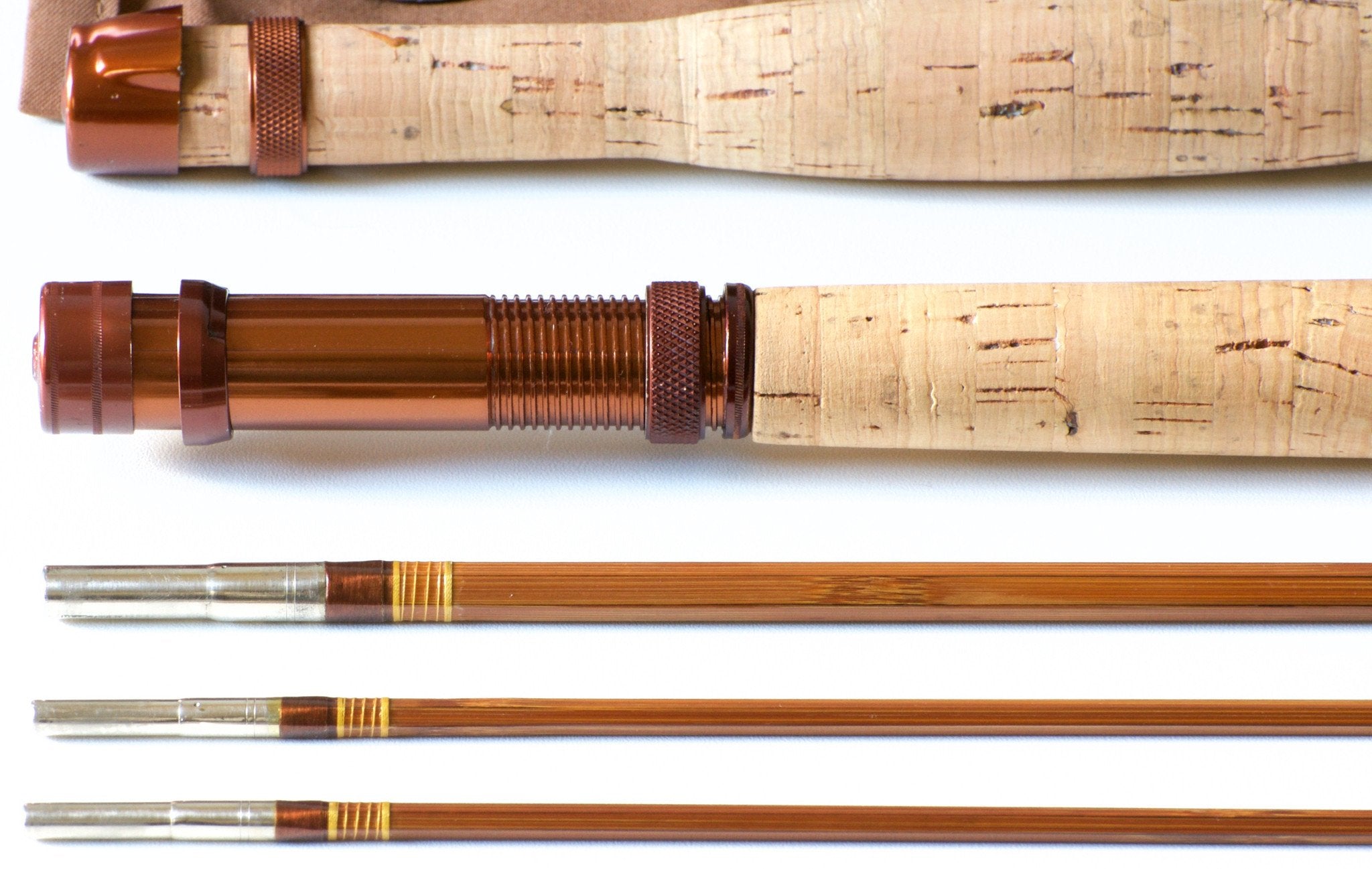 Also included is an alternate all cork reel seat with cap and ring and smaller cigar grip that the mid section ferrule fits into. This configuration (the grip, mid, and tip) weighs 3.8 oz. and results in a 6'3" midge rod with fast action for a five or six weight line.