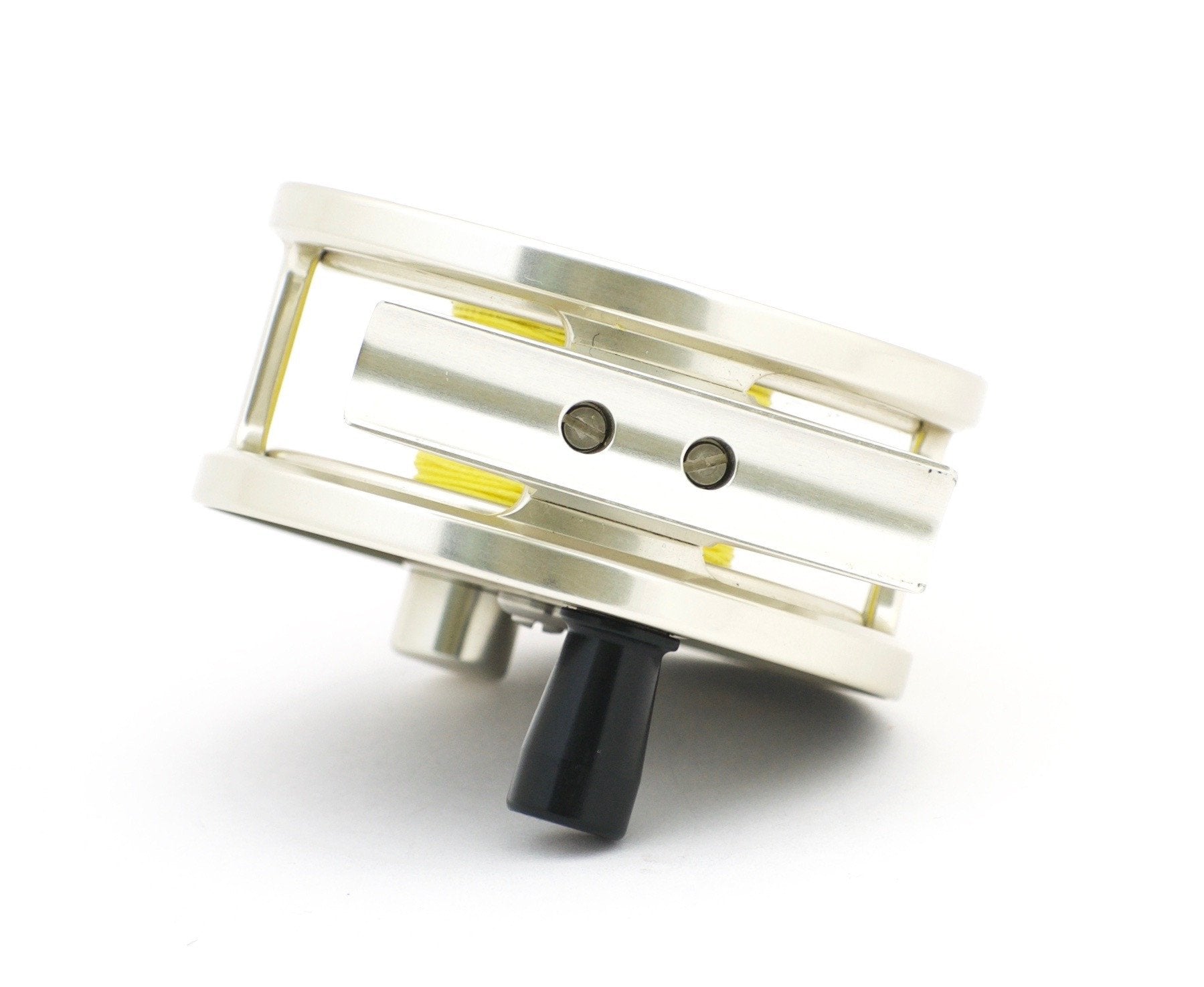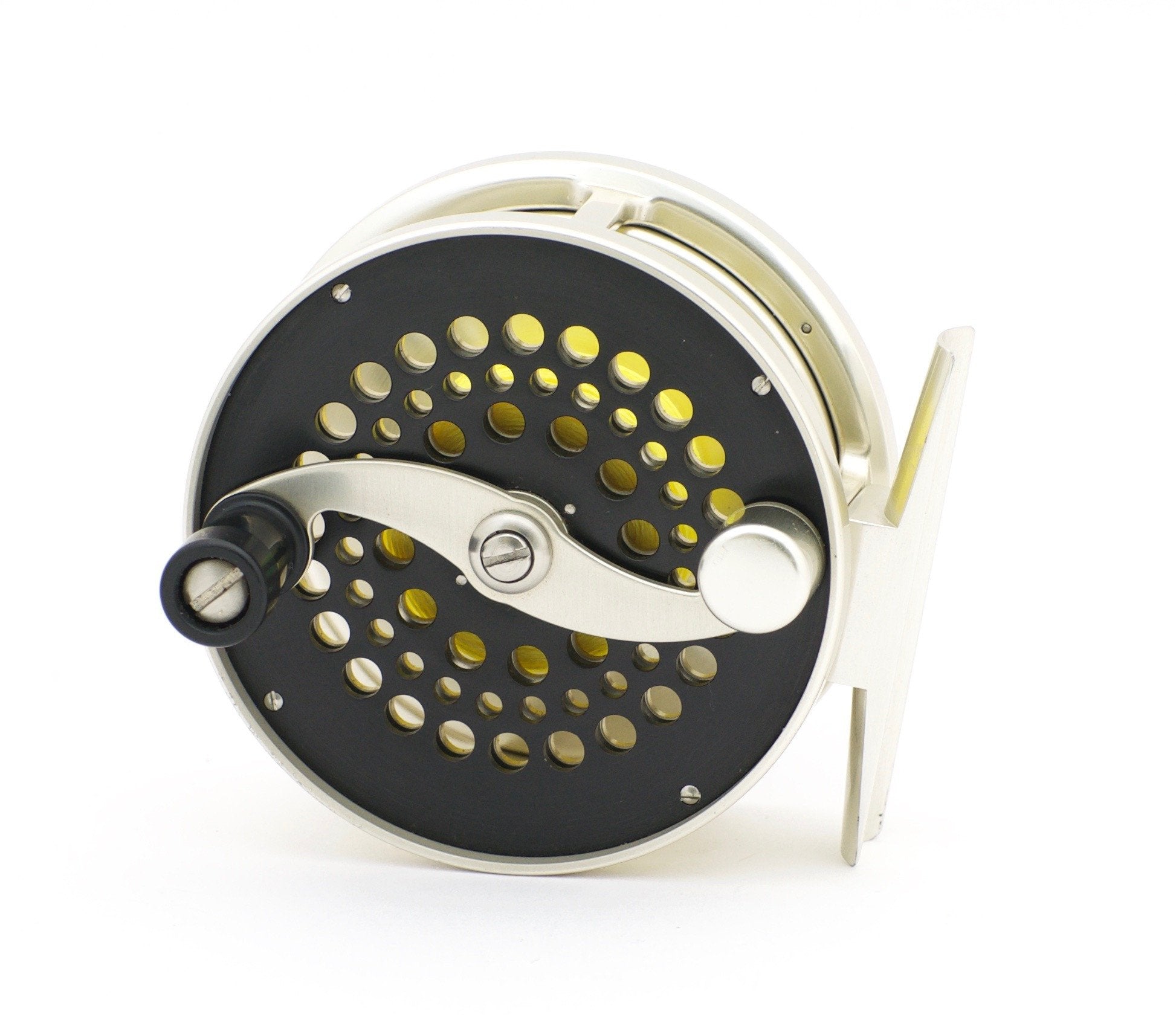 For sale here is a D.L. Robichaud 3" Traditional Trout fly reel. In the once crowded field of classic S-handle styled reels being made, I must admit that these Robichauds are one of my absolute favorite choices, given their cost to quality ratio. Excellent++ condition having been used very sparingly. Left hand retrieve only. Traditional fixed click/pawl. Made to hold a 5wt line plus backing. 3" diameter. Frame width is 1.33". Inner spool width of 0.70" Weighs 4 1/2 oz. Comes with its original reel pouch.