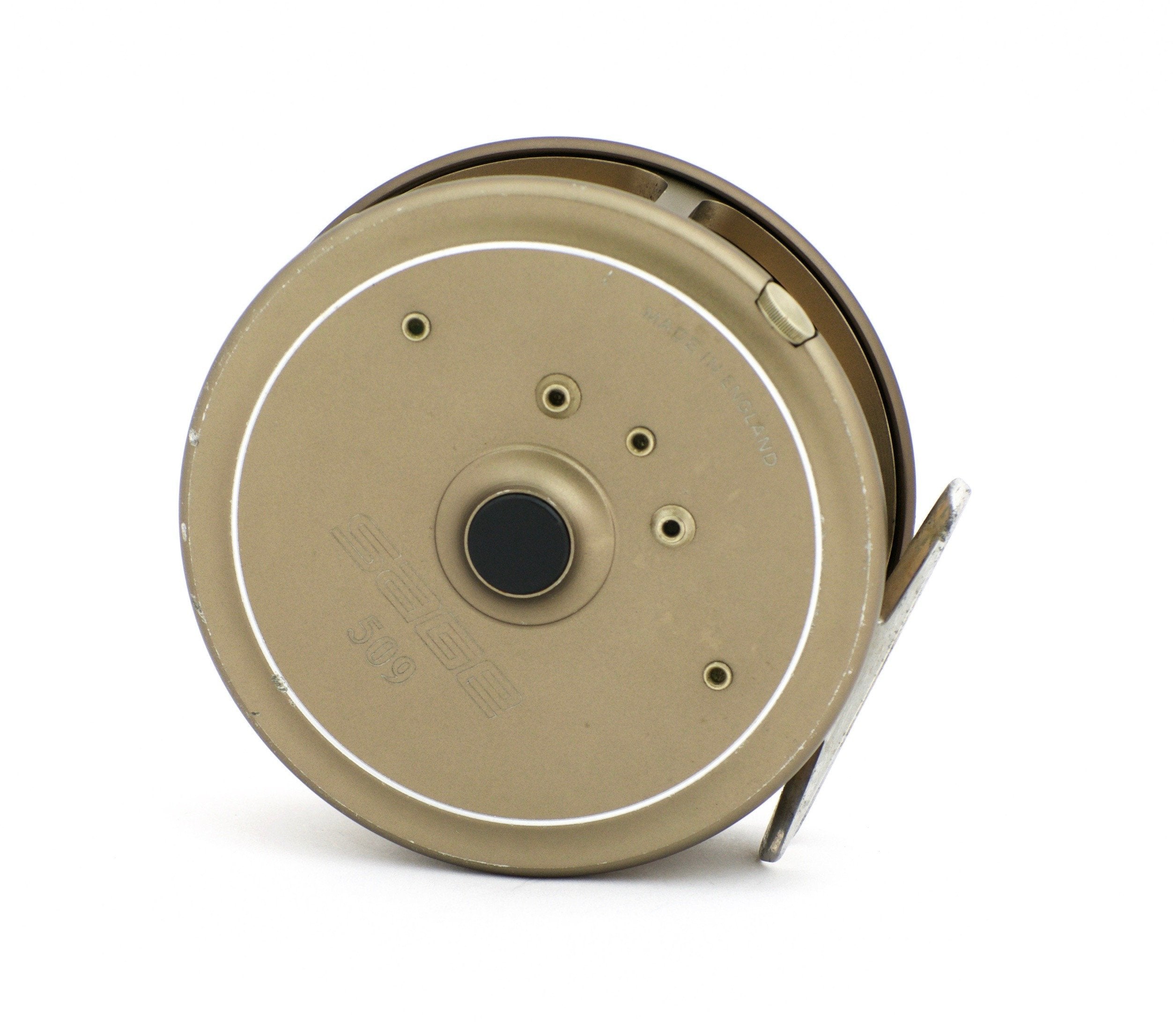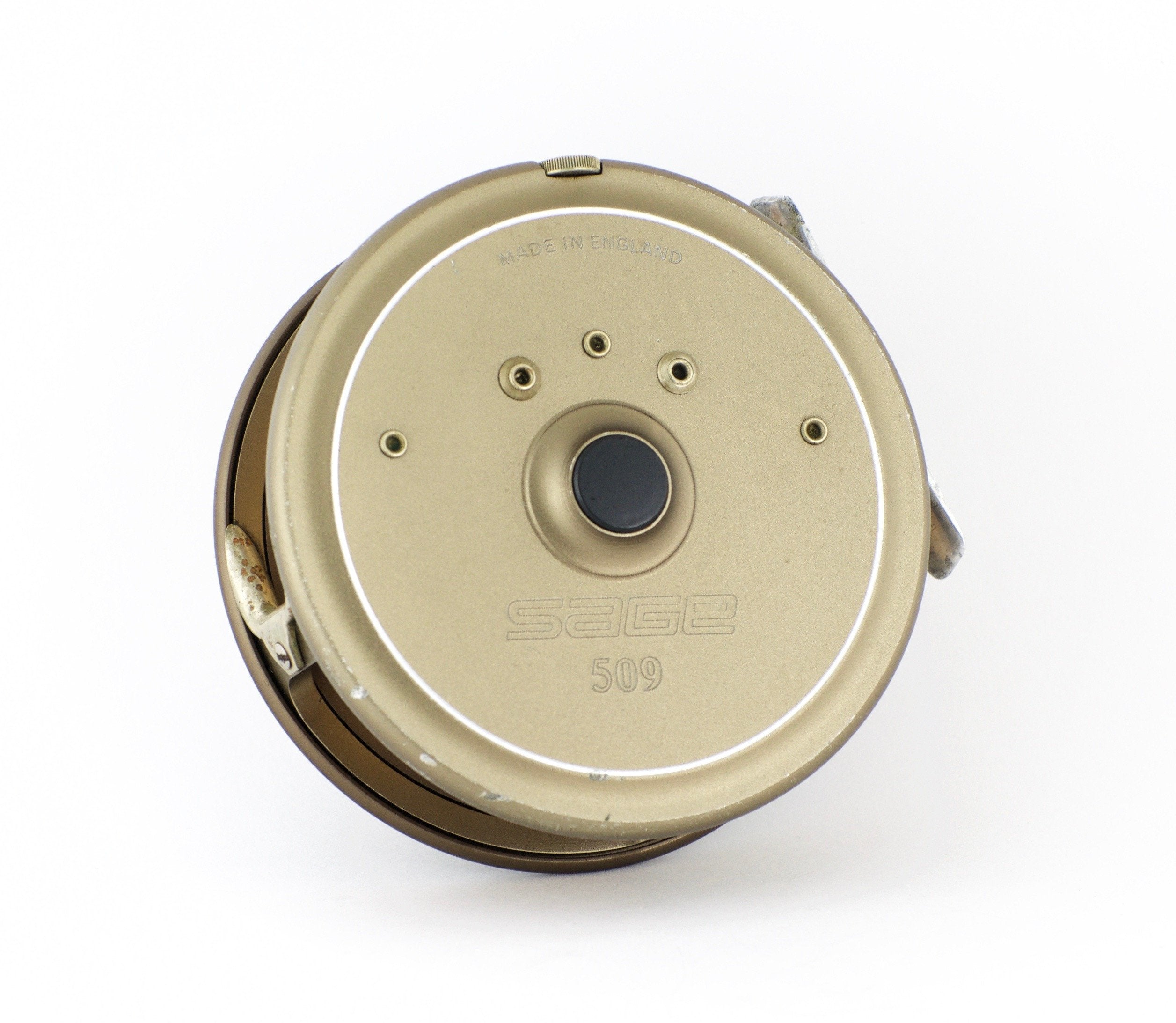 For sale here is a highly desirable Sage 509 Fly Reel. This reel was made exclusively for Sage by Hardy Bros. of England. This is the Sage equivalent of the Hardy St. John or JLH and Sage had them add a palming rim! The reel is in excellent used condition with some marks on the rims. Left or right hand retrieve. Comes with original Sage zippered case. Reversible single screw nickel silver line guide. Strong smooth drag with a loud outgoing click. An excellent reel for salmon or steelhead!