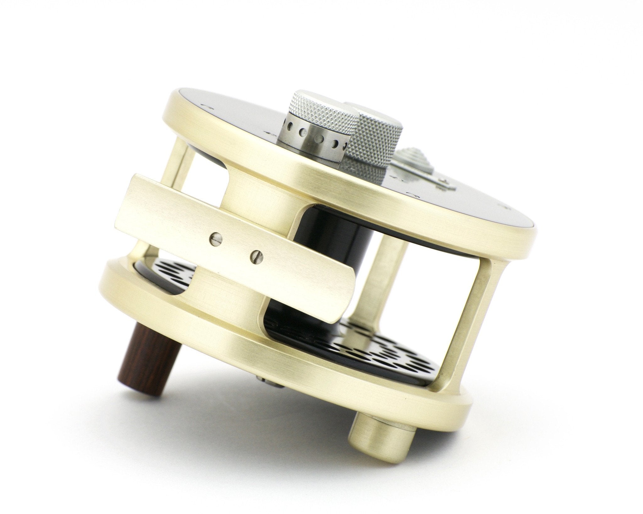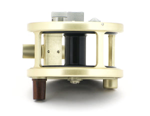 For sale here is a rarely seen Saracione SCA (Saracione Classic American) -- 3 5/8" diameter bench-made fly reel. This is the very scarce wide drum model made for Thomas and Thomas. The reels remains in near mint condition with the slightest of handling marks. Thomas and Thomas commissioned Joe to make these reels in the mid to late 1980s. This one is right hand retrieve. Gorgeous S-handle, black anodized aluminum sideplates, unique removable spool system and full-range drag adjustment knob with seven drag settings. Spool width is 1.2". Weight is 9 1/2 oz. A very scarce reel and in almost perfect condition!