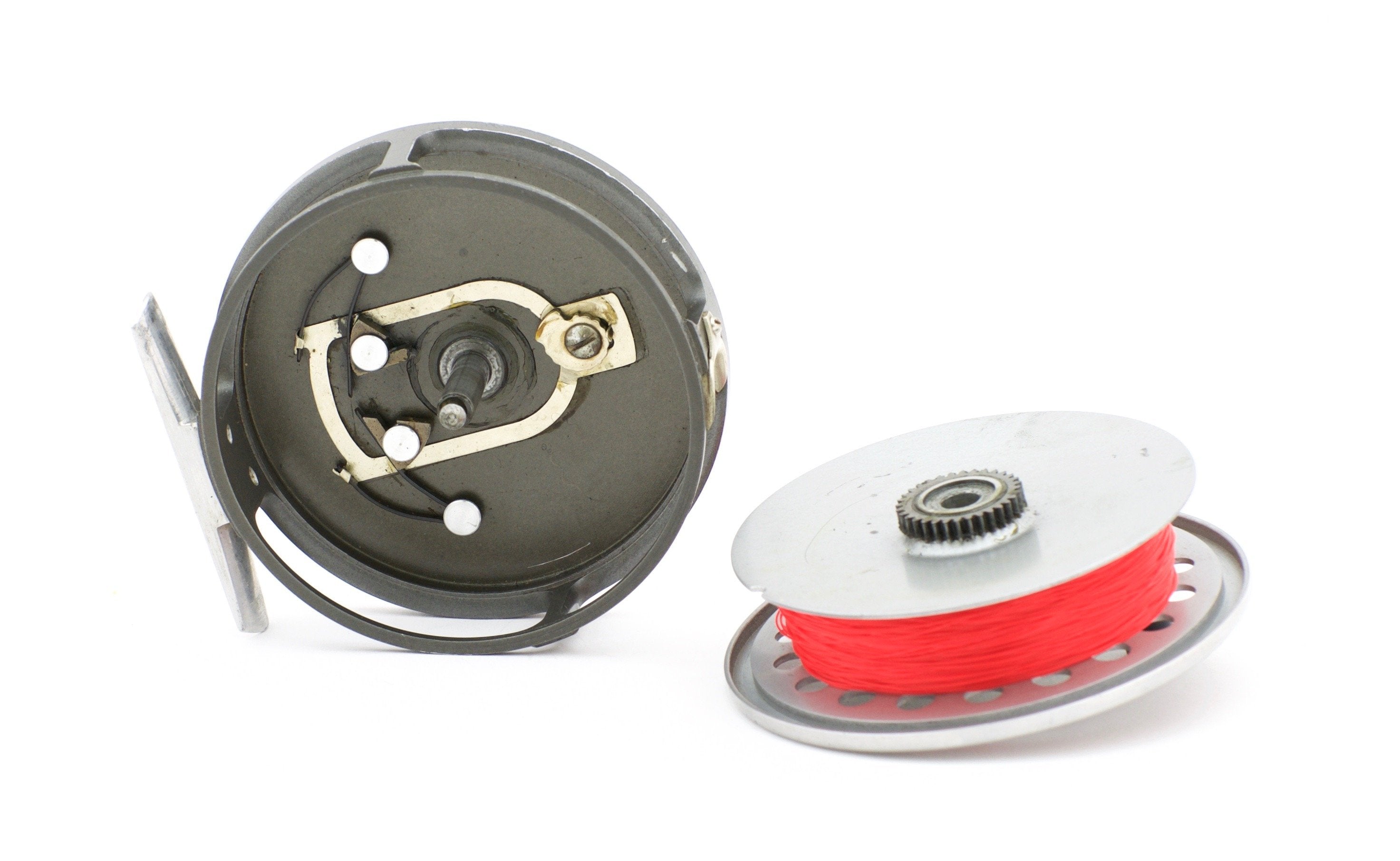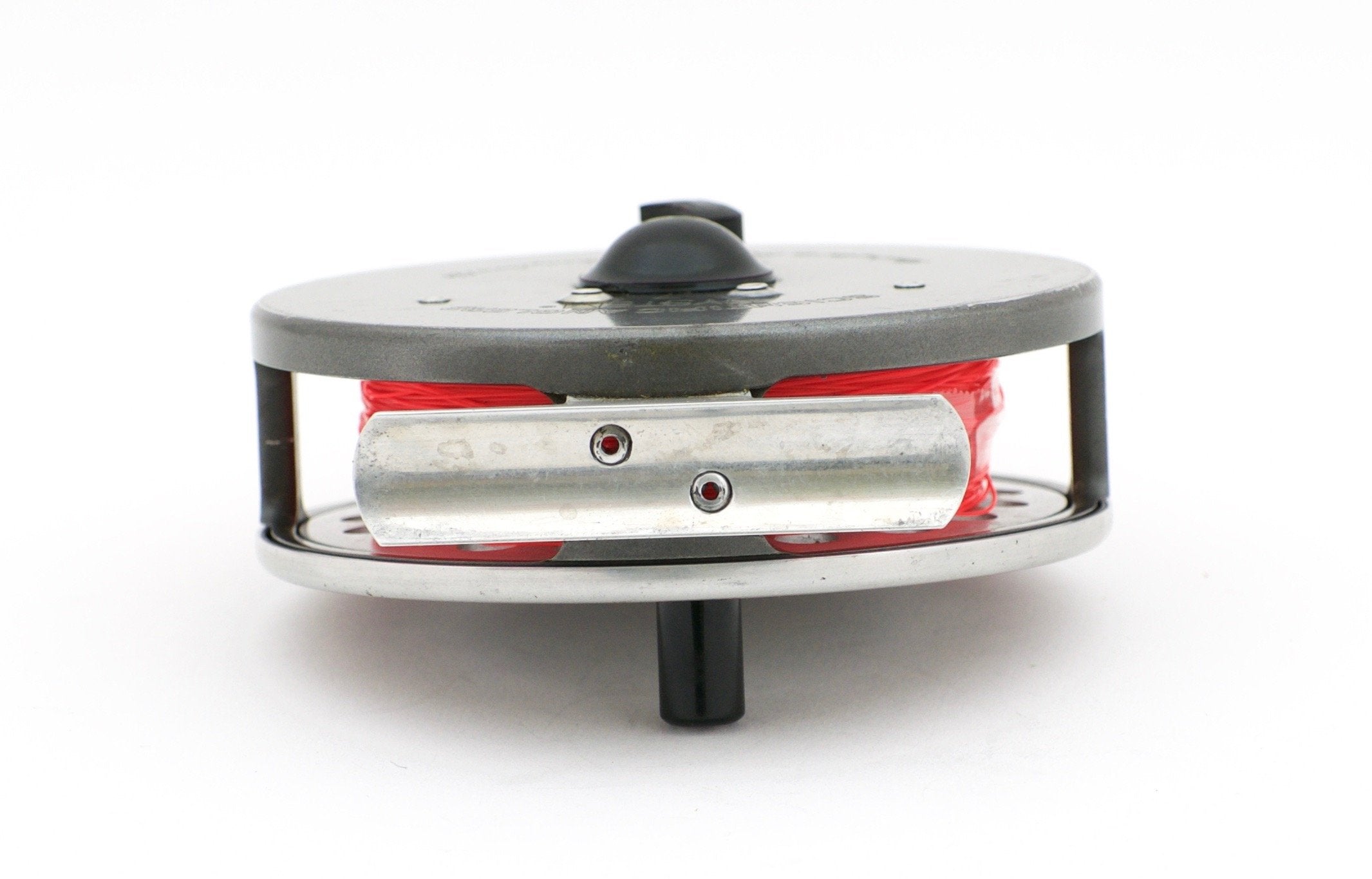 For sale here is a Scientific Anglers System 7 fly reel for 5/6/7 wt lines. Made by Hardy Bros. in England. 3 3/8" diameter. Adjustable click/pawl drag system. Palmable spool. Nickel silver reversible line guide. Set for LHW but can be easilyconverted to RHW. The reel is in very good condition with light wear to the rim of the frame and spool. The reel comes loaded with Amnesia line and backing. The weight (with line) is 6.10 oz. Comes in original blue zippered reel case. These spools and frames are interchangeable with the Hardy Marquis series.