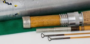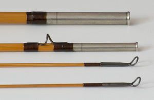 For sale here is a 9’0” 3/2 6wt F.E. Thomas Special, serial number F62, 5 1/4 oz. Made in 1957 forVon Lengerke and Antoine, Chicago.Standard brown wraps with black tipping at HK & male ferrules. Cigar grip, screw down locking reel seat with wood spacer. Replacement bag. Original Thomas tube with remnants of original Thomas “shield” label. All original unaltered rod.