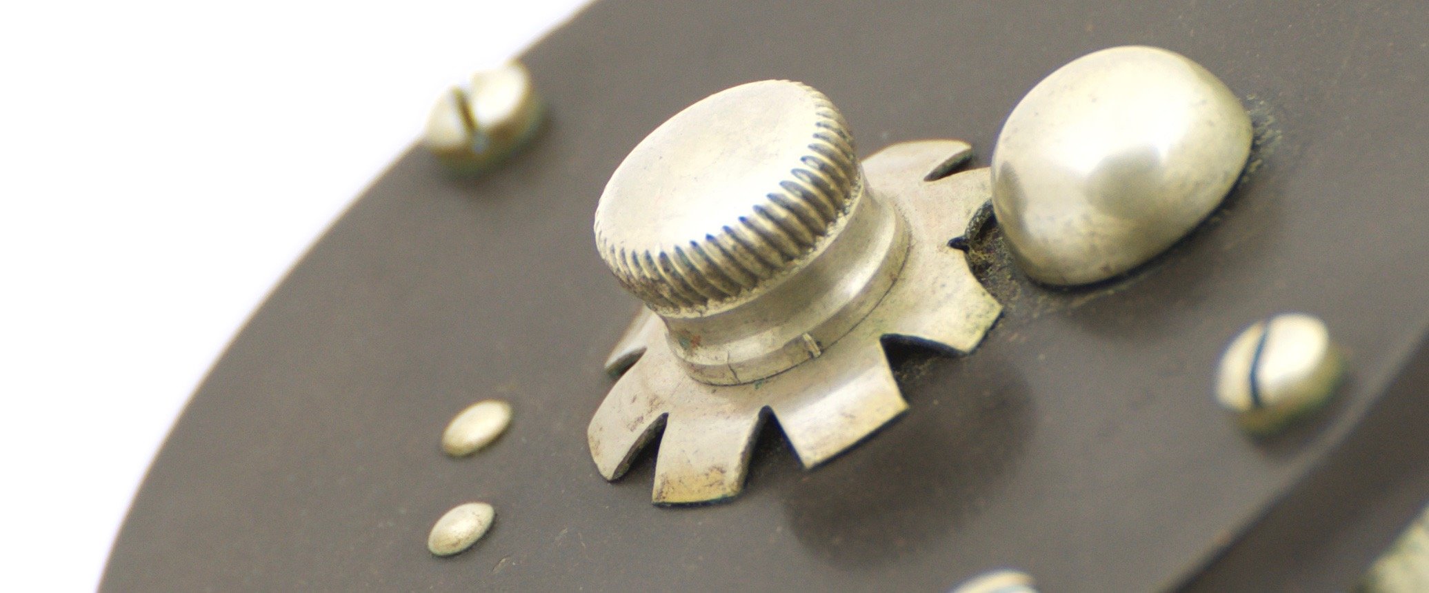 Clean and simple click/pawl operation. No cracks exist in the hard rubber, just light scratches. This reel would clean up very handsomely with very minimal polishing effort. The one-off clicker works as intended. The shouldered pillars and spider washer on the backplate looks absolutely stunning, an example of the design genius from the era of names such as the Vom Hofe's and others.