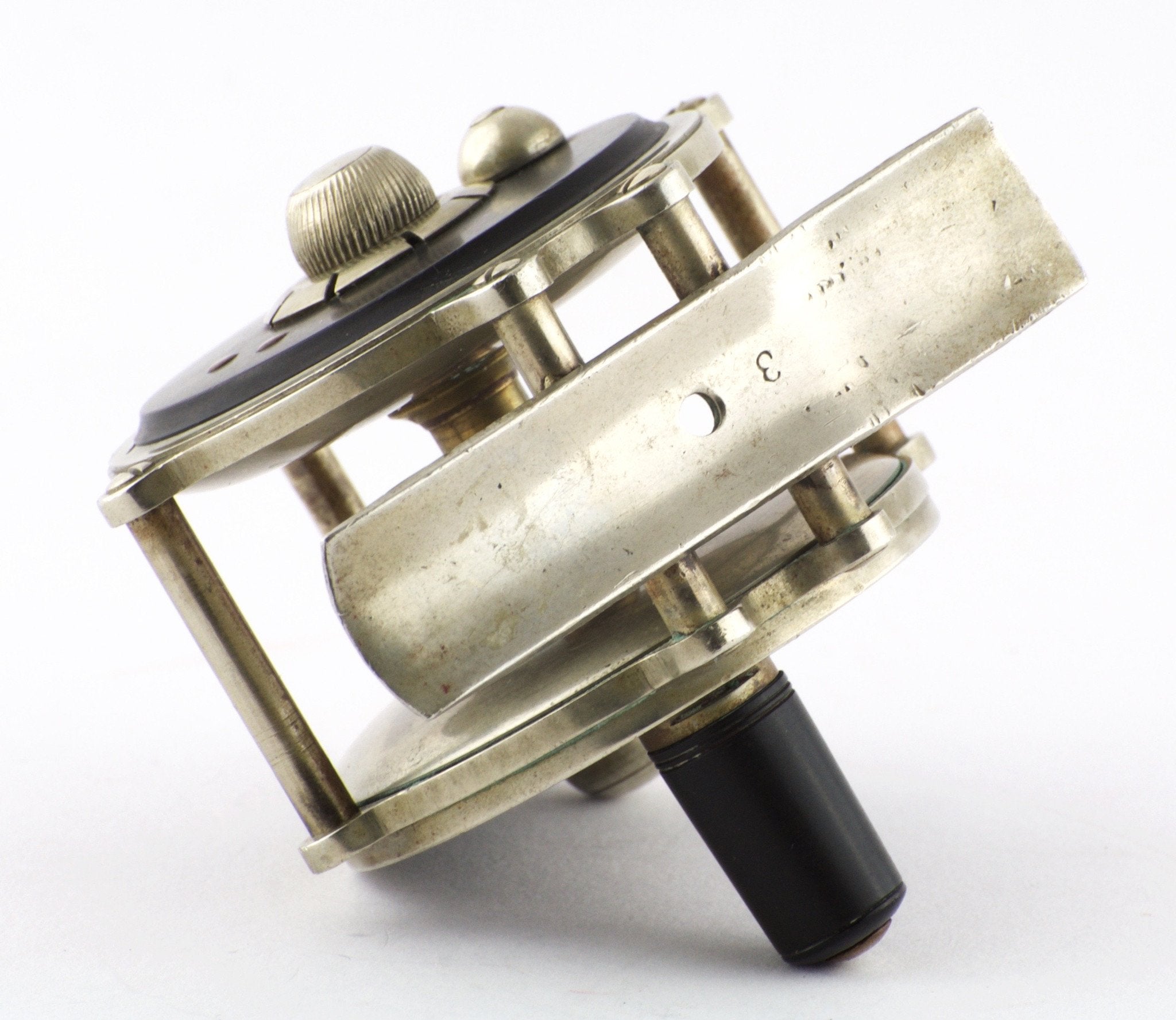For sale here is a wonderful example of a Julius Vom Hofe raised pillar trout fly reel. German silver and ebonite construction. Size 3. Mechanically the reel is in excellent condition. No cracks exist in the hard rubber. The stamping on the backplate is visible. The foot is a bit kinked on one end but can be put back straight by a competent reel mechanic. It fits the reel seats on the few rods I tested it on. A super nice example of one of my favorite reels!