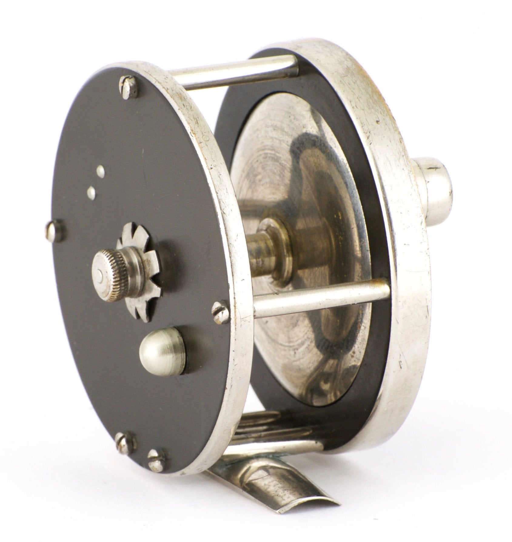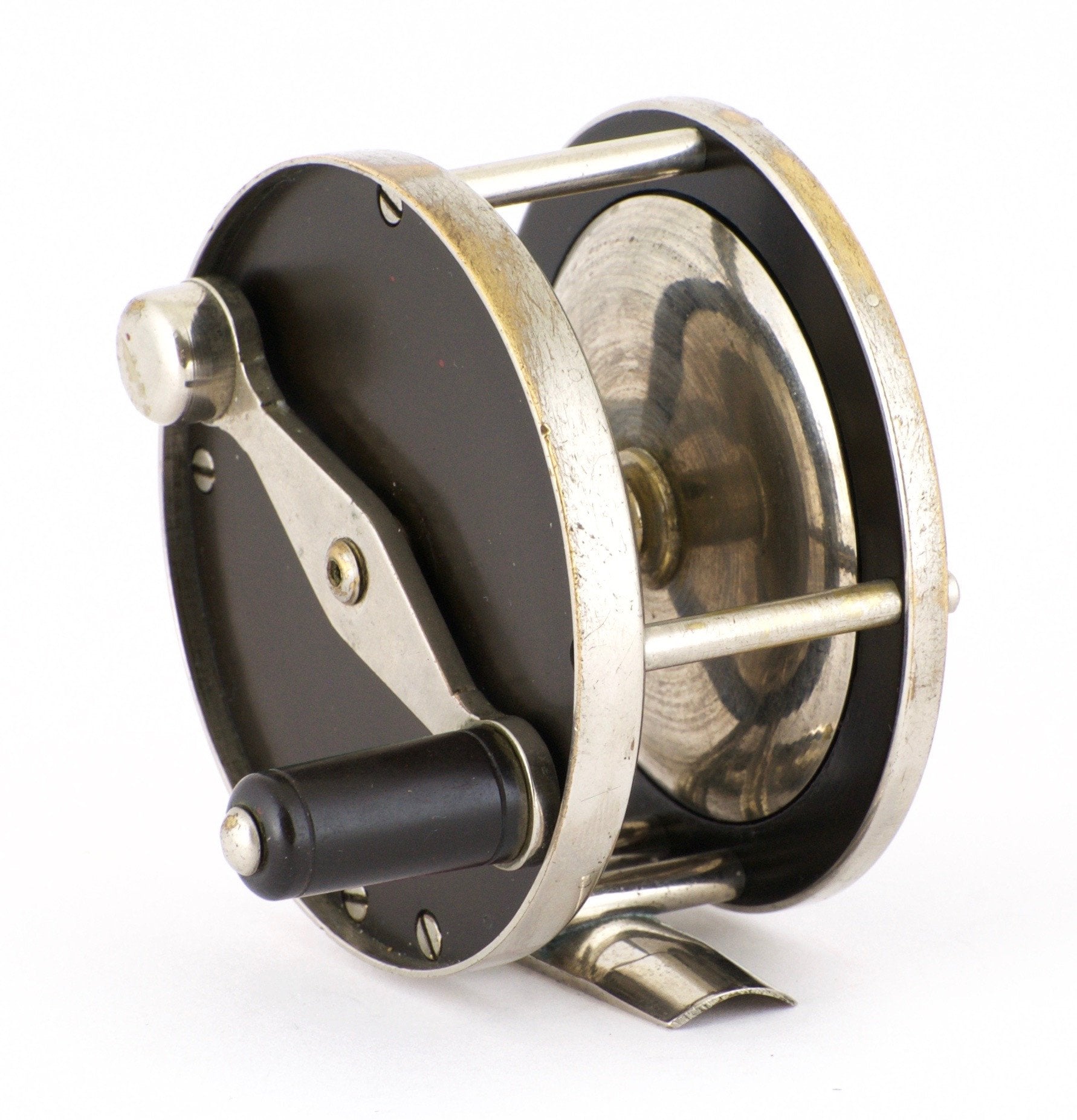 For sale here is a Julius Vom Hofe made size 1 fly reel. Stamped on the headplate, "Julius Vom Hofe Maker NY". 3" diameter, 1 1/16" wide spool. Hard rubber side plates and nickel plated brass hardware. The reel is in excellent condition cosmetically and mechanically. Blemish-free and unpolished sideplates, strong constant click and full length, unaltered german silver foot. All screws are in good condition.