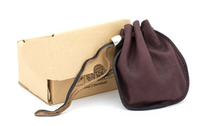 Included is a very fine leather reel pouch, shipping box, paperwork (bill of materials), and spool removal tool (allen wrench).