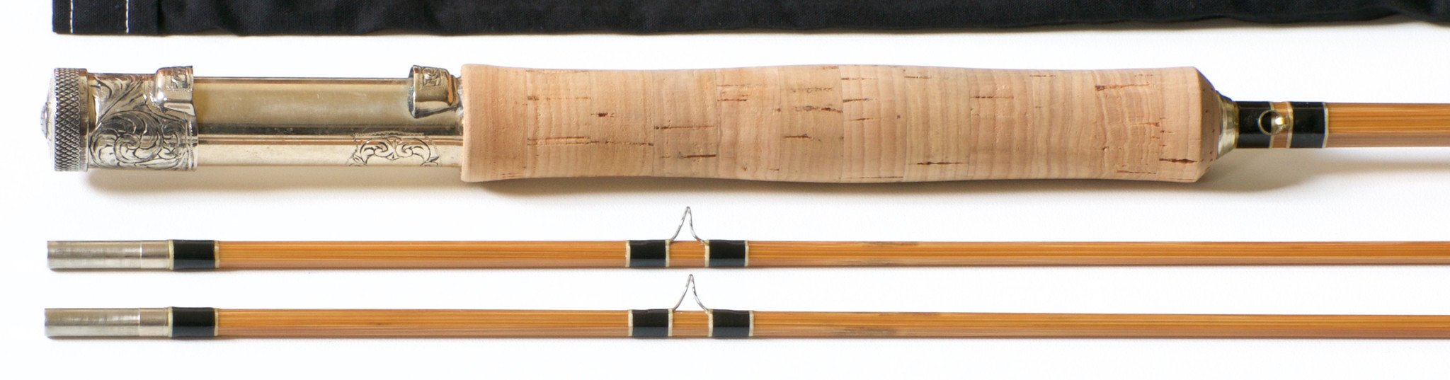 For sale here is a Daryll Whitehead rod. 7' 2/2 for a 4 weight line based on the Goodwin Granger Model 7030 taper. Wrapped like a Granger Registered (very good looking!) Stunning Paolo Barbetti engraved n/s reel seat hardware. The rod weighs 4 3/8 oz. Excellent plus condition. Medium fast action. The ferrules are 12/64. Brilliantly executed by Mr. Whitehead! Comes with original bag and labeled rod tube.
