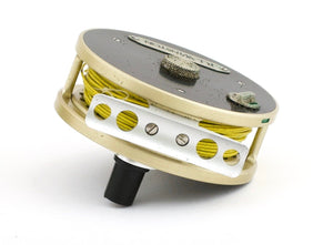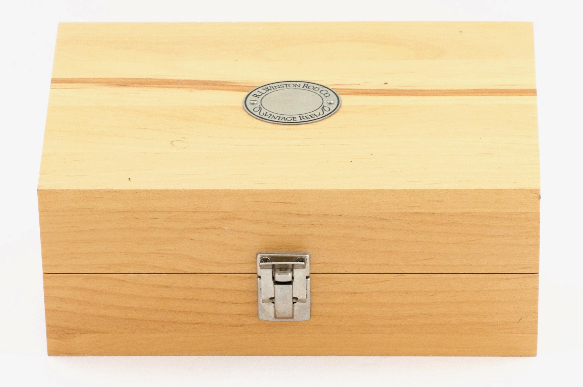 For sale here is a R.L. Winston Co. "Vintage" Limited Edition Trout Fly Reel made in the early 1990s by Siskiyou. This is the 3/4 model, complete with spare spool, reel oiler, and pine presentation box. Left hand retrieve. The reel appears in little-used condition but the reel and spool need to be cleaned due to the disintegrated foam backing adhering to the aluminum surfaces. This should easily polish off. The spool capacity for the 3/4 is WF4+80. Diameter is 3 1/8". Weight is 4 1/2 oz.