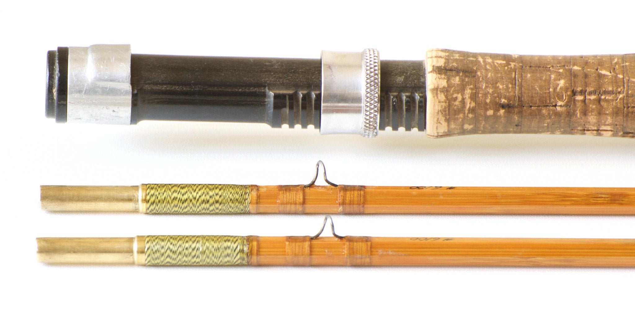 Glenn Brackett provided some feedback on the rod, notably that "it's a very rare rod, not in the catalog so probably custom ordered, possibly a tournament rod. Outside dimensions would suggest a 7/8 weight rod, but it's very light in hand, probably hollowed into the tips and best with a 5 or 6 weight line. Rare size 16 ferrule."