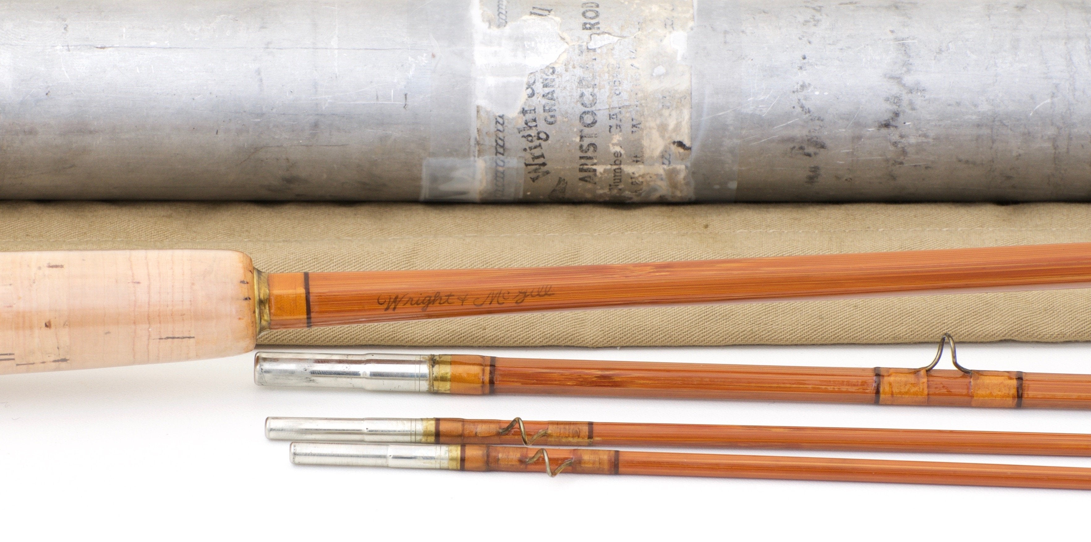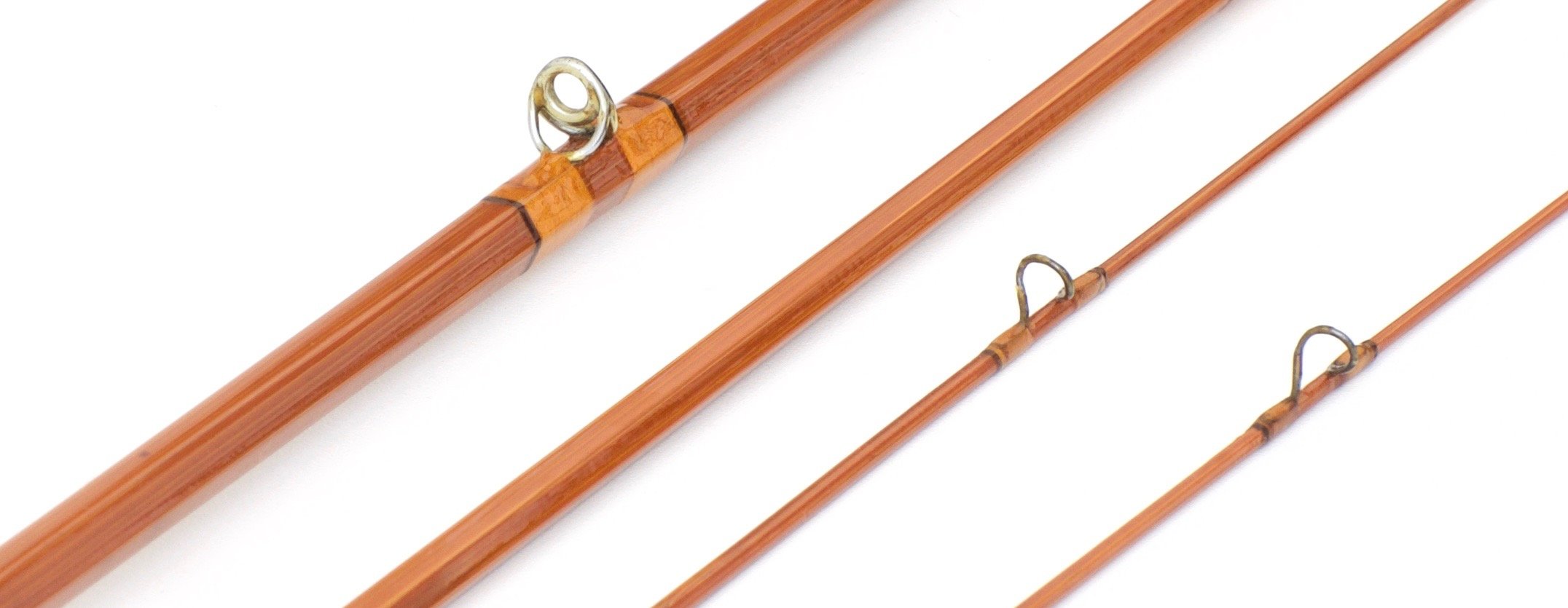 Classic Granger ammoniated cane with bronze colored silks and chestnut tipping. The inking on the butt remains clear though somewhat faded. The western-style grip is in excellent condition and only lightly soiled and currently covered with protective shrinkwrap. Granger/W&M nickel silver patented up-locking reel seat works flawlessly and is free of dents or scratches. The ferrule fit is excellent. The rod has a versatile medium-fast action well suited for larger rivers and lakes. Weight is 5.25 oz. Includes original bag and tube with original label 80% intact. Scotch tape has been placed over the edges of the label.