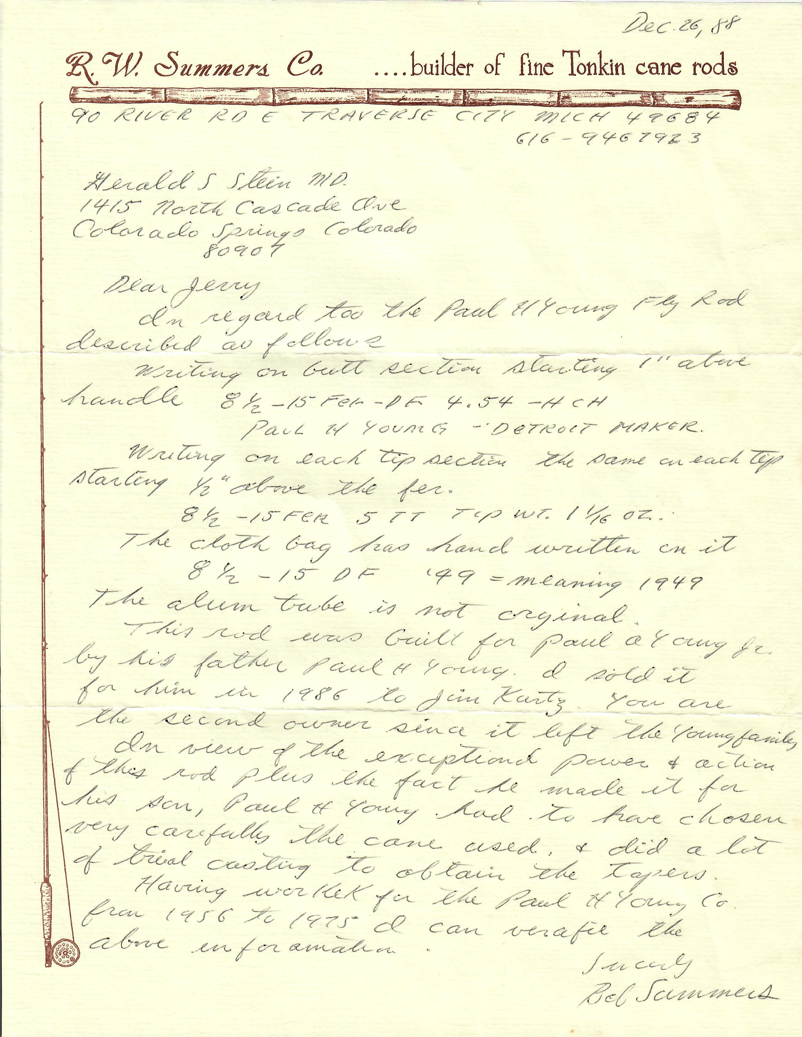 As Mr. Summers states in his provenance letter, "In view of the exceptional power & action of this rod plus the fact that he made it for his son, Paul A. Young Jr. had to have chosen very carefully the cane used, & did a lot of trial casting to obtain the tapers."