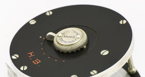 For sale here is an Otto Zwarg Model 300 "Saguenay" (Direct Drive) fly reel in the very desirable size 4/0. Excellent original condition. This is one of the rare reels with the Brooklyn marking on the oil cap. Serial number B88 from the 2nd year of production. The drag is still perfectly strong and smooth. The reel foot has been neatly tapered on both ends in order to accommodate modern reel seats.